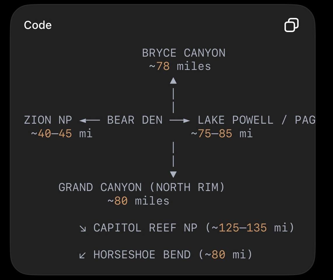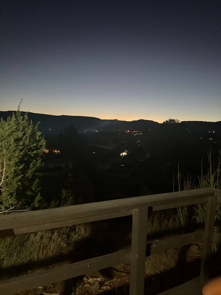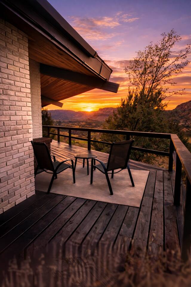 Just 35 minutes from Zion National Park, The Bear Den. 👉 This is what turns a trip into an experience. • 2+ acres of private land – room to breathe and unwind. • 3 minutes to town – groceries, restaurants, essentials • Panoramic desert views • Private sauna • Fire pit & expansive outdoor decks • Short walk to grocery stores & restaurants • Easy access in under an hour to surrounding parks if you want space, privacy, and a true desert retreat experience—The Bear Den delivers.